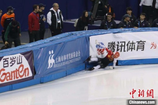 中新网上海12月8日电 (记者 缪璐 邢翀)在8日进行的短道速滑世界杯上海站比赛中,中国短道速滑名将武大靖带伤出现在男子500米四分之一决赛的赛道,但在最后的决胜圈,武大靖再次摔出赛道,由于没有成绩,武大靖止步四分之一决赛,其两名队友也相继出局,中国队最终无缘男子500米半决赛。