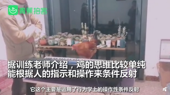何世宇介绍,其实让鸡弹琴,主要是利用其行为学上的操作性条件反射,因为鸡只有一个嘴巴可以啄,所以只能完成单一的科目,训练期大概就只需要1个月左右,“鸡它脑容量小,它比较单纯,比狗容易训练”。