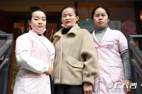 参与救人和帮忙救火的美容院工作人员刘女士(中)、黄女士(左)和阳女士。