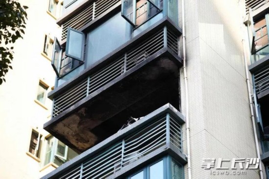 起火房间位于5楼,起火时,滚滚浓烟从阳台处冒出。本文图均为长沙晚报全媒体记者 刘琦 摄