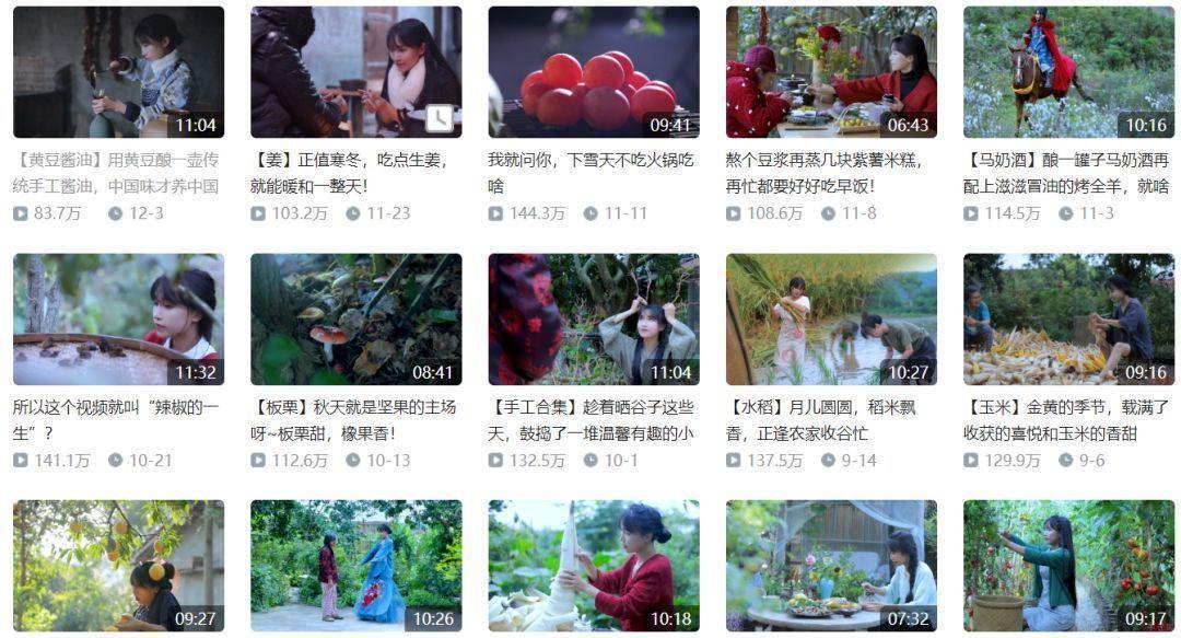 春耕夏种秋收冬藏,利用应季蔬菜水果烹调美食,烹茶煮酒……虽然她在视频中不怎么说话,但整个安安静静的过程就足以圈粉千万。