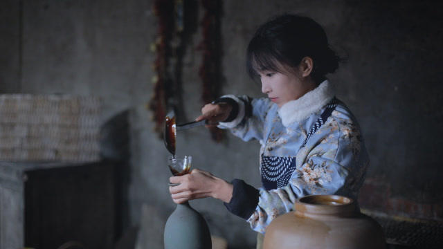 这个穿着粗布汉服干农活的姑娘,执着于回归万物本质,用中国传统技艺展现美食、器物从无到有的制作过程。