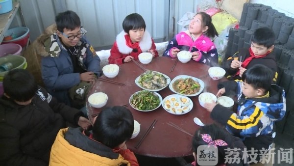 中午,伴随着菜香,爷爷蔡洪运也骑车把上学的孩子们接回来了。一时间,家里烟火气十足。