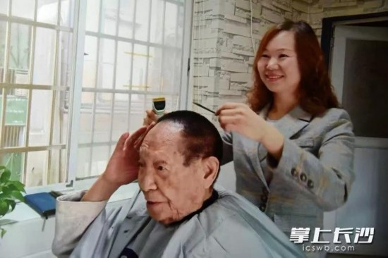 去年12月,袁隆平在海南时生病,住进了医院。病床上,他想剪头发,时常念叨:“小曹怎么还不来咯?”听说了这一情况,曹小平在长沙坐不住了。她关了店门,带上理发工具,乘飞机赶到三亚。