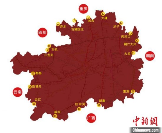 贵州省17个省界收费站位置示意图 贵州省交通运输厅取消高速公路省界收费站工作指挥部供图
