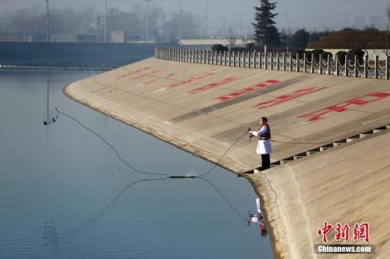 资料图:工作人员为水质监测取水。中新社记者 富田 摄