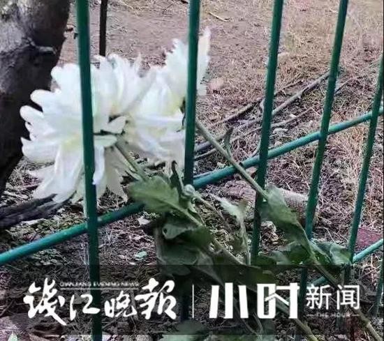 ▲在张雪领下水救人的七格闸铁栅栏位置,有人献花。