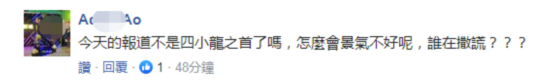 其实,就在当天上午,台当局领导人蔡英文还在参加活动时还宣称“台湾经济稳稳前进,现在发展是‘四小龙’第一,所有的经济专家预测,都觉得台湾经济发展力道越来越强,产业越来越好”。不想,下午就传出远航停飞的消息,惹得台网友指责蔡当局“说干话!”“今天报道还说是‘四小龙’之首呢,怎么会不景气,谁在说谎?”