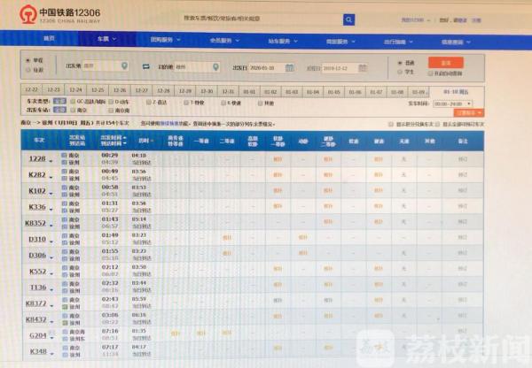记者登录12306网站发现,一些热门方向,例如从南京到徐州,春运首日的火车票,基本已经抢售一空。铁路部门表示,2019年12月30日零时起,全国铁路实施年底大调图。这也意味着,伴随着部分线路的优化调整,游客出行将有新选择。因此,春运期间旅客出行要留意相关的变化。与往年不同,2020年春运回家,大部分乘客都将使用铁路电子客票,购买电子客票后,可凭12306手机App生成的动态二维码,直接通过自动检票机进站乘车。