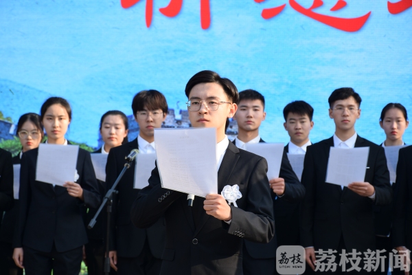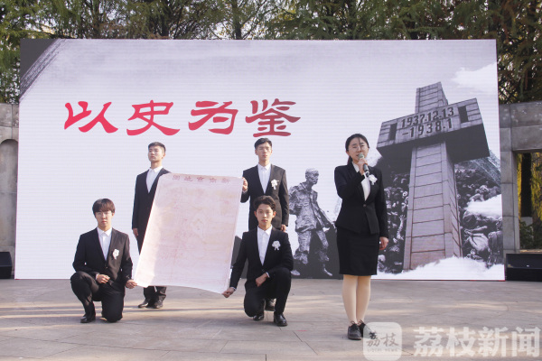 南京审计大学党委常委、党委宣传部部长强飚老师呼吁大家秉承先烈遗志,担当时代使命,坚定理想信念,为中华民族伟大复兴和世界的和平发展作贡献。最后,现场数千名师生以朗诵《和平宣言》和庄严宣誓的形式宣告“昭昭前事,惕惕后人”、“永矢弗谖,祈愿和平”的心愿。铭记历史,不只是民族的悲怆,还有落后必亡的训诫;纪念先烈,从不为宣扬复仇的怨念,只为许下复兴的心愿:中国特色社会主义进入新时代,意味着近代以来久经磨难的中华民族迎来了从站起来、富起来到强起来的伟大飞跃,迎来了实现中华民族伟大复兴的光明前景。而这,就是每一位青年应当负起的使命和担当。