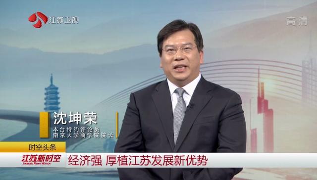 江苏台特约评论员、南京大学商学院院长沈坤荣:“经济强是我们江苏的最大优势。也是这五年,推进‘强富美高’新江苏建设的重要基础。我们江苏的‘经济强’,强的基础就是实体经济;强在创新——就是以创新驱动来重塑现代化的产业体系。强在布局——就是我们围绕产业链来部署创新链,围绕创新链来培育产业链。我们强在改革——那就是无论是"放管服"改革,还是不见面审批这些举措,都是在优化我们的营商环境。我们还强在开放——那就是抓住‘一带一路’交汇点建设、长三角一体化、长江经济带建设、新一轮自贸区建设这些重大的国家战略的叠加机遇,来全方位的增强经济发展的活力,拓展产业发展空间,来增强经济韧性。可以说,过去五年,正是遵循了总书记对江苏的要求,我们的经济发展突显了绿色、创新这些鲜明的特征,已经开始从规模总量向质量效益全面的转型,也必将为我们全国经济高质量发展书写出精彩的江苏答卷。”