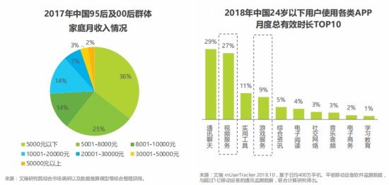 《报告》还提到,在95后中,家庭月平均收入高达10676元。根据中国统计局发布的数据,2017年上半年全国居民家庭月平均收入为6250元,95后的家庭收入高于全国居民家庭的70.8%。这群成长于相对优渥的物质条件中的年轻人,更乐意进行文化娱乐服务消费。