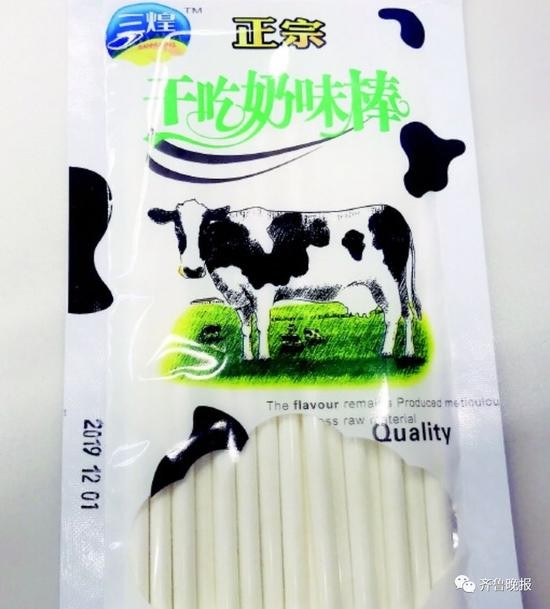 12日中午,记者探访了济南历山路、舜耕路等路段上四家学校,并未在附近的超市里发现有售卖类似“干吃奶棒”的相关产品。