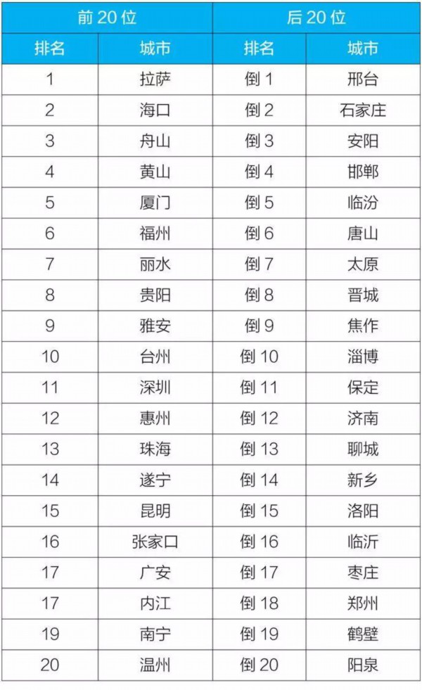 2019年1-11月,168个重点城市中邢台、石家庄、安阳市等城市空气质量相对较差;拉萨、海口、舟山市等城市空气质量相对较好。