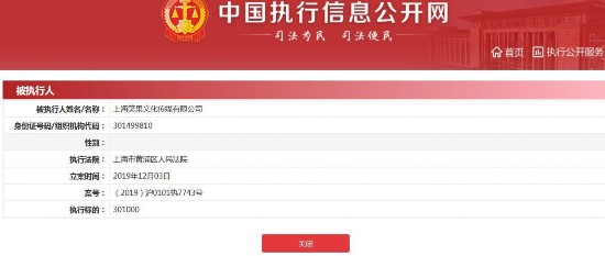 此前,中国执行信息公开网信息显示,12月3日,“上海笑果文化传媒有限公司”被上海市黄浦区人民法院列为被执行人,执行标的30.1万元。