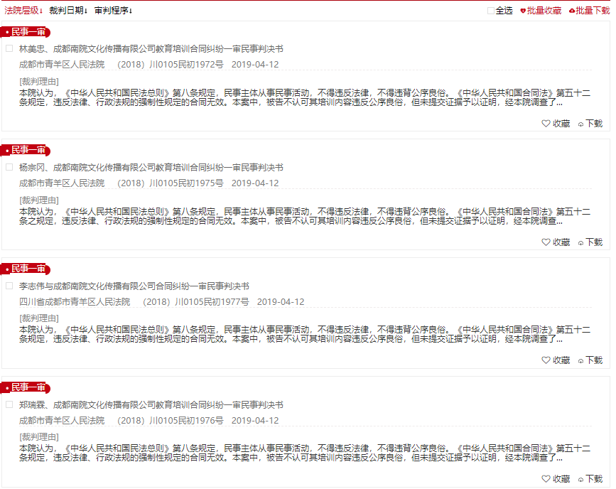 荔枝新闻在中国裁判文书网上查询到,该公司曾因教育培训合同纠纷数次被人告上法庭。