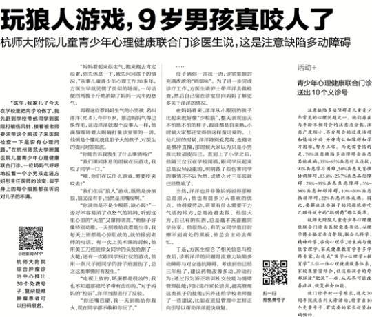 杭师大附院儿童青少年心理健康联合门诊医生说,这是注意缺陷多动障碍
