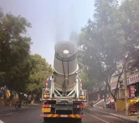这次回老家,除了吊车、铲车、叉车,儿子还对一个拖着巨大水罐、洞口朝天、能够向天空“发射”水雾的大家伙充满了好奇。