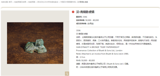 记者在该拍卖公司的官网上看到,中国历代青铜器专场所展示出来的拍卖标的有三十多件,从其介绍的情况来看,估价最高的是2200万的标注为商代晚期的青铜奚卣,还有标注为西周早期的簋、尊、盘、青铜兽首刀,以及标注为战国时期的青铜鎏金交体龙纹带钩、提梁盉,标注为汉代的虎镇、青铜短剑,标注为唐代的铜镜等等。国家文物局接到的群众举报称,就是在这些文物中有疑似出土文物。