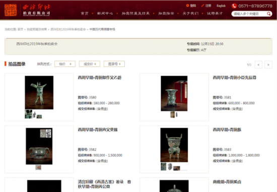 近日,记者从国家文物局获悉,因接到群众举报,反映西泠印社拍卖有限公司正在进行的“2019年秋季拍卖会—中国历代青铜器专场”拟拍卖疑似出土文物的情况。国家文物局已经正式向浙江省文物局发函,要求其尽快对文物拍卖标的进行审核。那么,浙江这家拍卖公司所设置的2019年秋季拍卖会上的中国历代青铜器专场,究竟要拍卖的都有哪些青铜器呢?