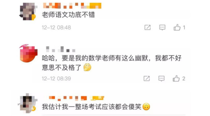 看到这张“网红”试卷后,有网友直言,“这个数学老师的语文功底不错”,“如果自己要是有这么幽默的老师,都不好意思不及格”。