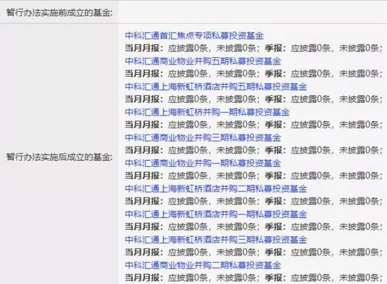 基金业协会信息显示,中科汇通(上海)资产管理有限公司旗下备案了十来只私募产品,包括中科汇通上海新虹桥酒店并购系列、中科汇通商业物业并购系列、中科汇通首汇焦点专项私募基金等。