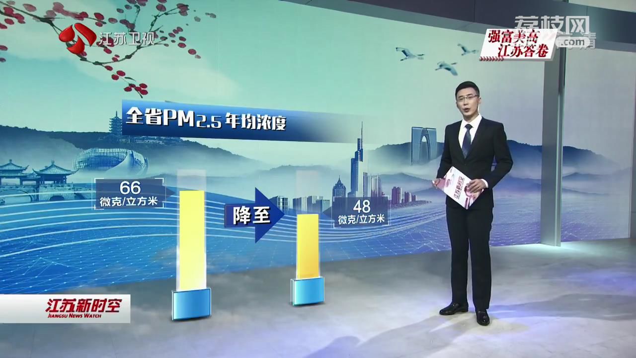 五年来,江苏的天更蓝,空气更清新。全省PM2.5年均浓度由66微克/立方米降至48微克/立方米。全省环境空气质量优良天数比率增至68.0%,提升7.7个百分点。