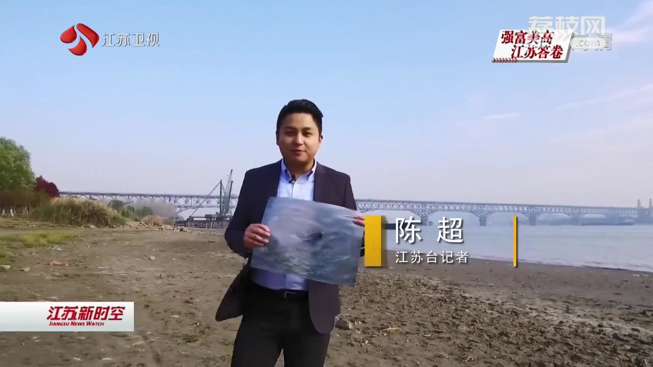 江苏台记者陈超说:“我现在是在南京滨江外滩,手中这张江豚照是前不久一位市民在这里拍下的。你知道吗?今年以来,江豚频繁现身镇江、扬州、泰州等地。江豚嬉戏的美好场景不再停留在记忆中,而是回到现实里。”