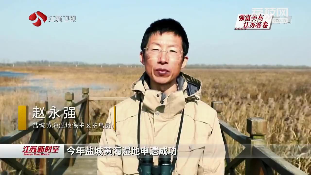 盐城黄海湿地保护区护鸟员赵永强说:“今年盐城黄海湿地申遗成功,成为江苏省首个世界自然遗产。今后,我会跟我的同事继续站好岗,让更多鸟儿来这里栖息安家。”