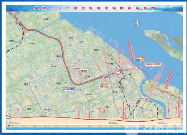 本次开工范围为吴淞口长江隧道越江段及外高桥集装箱作业站。吴淞口长江隧道位于上海市宝山区、浦东区境内,下穿长江口及黄浦江,为全线的控制性工程。越江段隧道长度为8.61km,双洞单线水底隧道,设计时速120km/h。该隧道是目前国内第一条在软土地区修建的盾构法客货共线铁路隧道;国内第一条通过长江和黄浦江的铁路隧道;国内第一条全面采用封闭内衬的盾构法隧道。