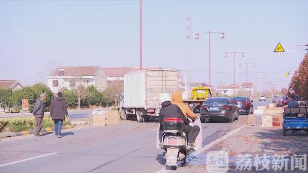 12月14日,海门汤正公路发生一起交通事故,一辆厢式小货车与电动车发生碰撞,货车车厢倒在骑电动车的老人身上,情况非常危急。