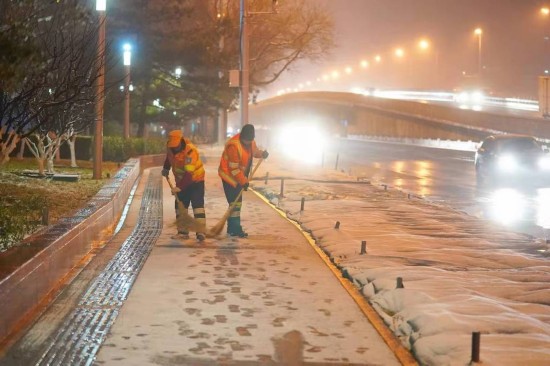 12月16日清晨,为确保市民出行便利,西城环卫环丽中心职工对辖区内街区路面及人行步道进行人机联合布撒融雪剂作业。截至目前环丽中心出动人员357人次、出动车辆共计37台、除雪机械设备30余台、施撒融雪剂30余吨。保证作业路段畅通,没有结冰现象。