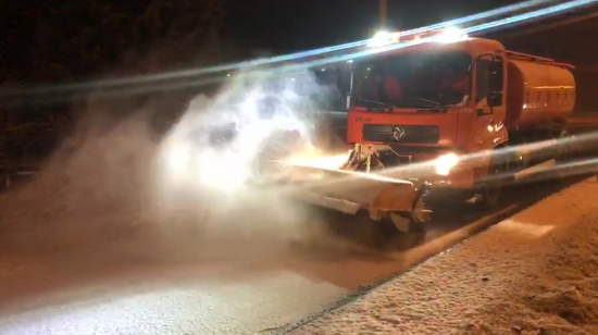 同时,全力做好西北通道八达岭地区雪天交通保障工作,至今早上7时,八达岭地区G6辅路、京银路共出动铲冰除雪作业人员62人次,出动机械设备12台套,撒布固体融雪剂8吨,液体融雪剂96吨,累计除雪里程30公里。