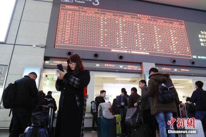 资料图:12月12日,旅客在铁路上海虹桥站排队购买车票。殷立勤 摄