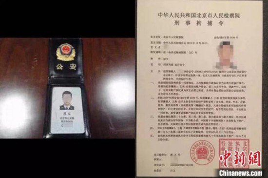 骗子出示所谓的刑事拘捕令。乐清公安供图