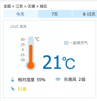 目前气象资料显示,今天白天无锡市云系将逐渐增多,气温上升明显,14:00气温达到21.7℃。