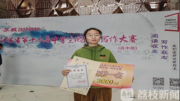 据了解,本次大赛,是从20万名高中生中选拔出288名选手,参加决赛,作文题是“阅读时光”。袁丁的角度独特,是以给未来孩子写一封信的形式,娓娓道来。袁丁因此摘得特等奖中的第一名。而在去年,她已经获得江苏省中学生写作大赛特等奖和诗歌大赛“诗歌之星”的荣誉,实现了江苏省中学生写作竞赛的大满贯。