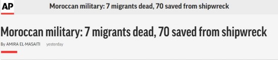 【环球网报道 记者 侯佳欣】又发生偷渡事件!据美联社12月16日报道,摩洛哥军方官员称,当地时间16日,一艘载有非洲移民的船只在航行过程中沉没,造成7人死亡,另有70人获救。据悉,这些非洲移民试图从摩洛哥出发,穿越地中海,通过海路前往西班牙。
