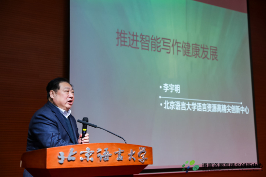 论坛由北京语言大学语言资源高精尖创新中心和中国中文信息学会社会媒体处理专委会联合主办,中心主任李宇明教授作《推进智能写作健康发展》主旨报告。