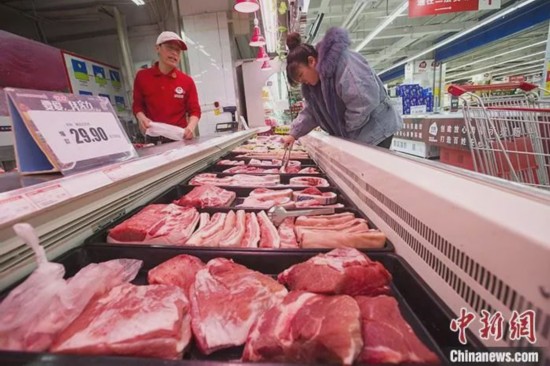 资料图:消费者在山西太原一超市选购猪肉。 中新社记者 张云 摄