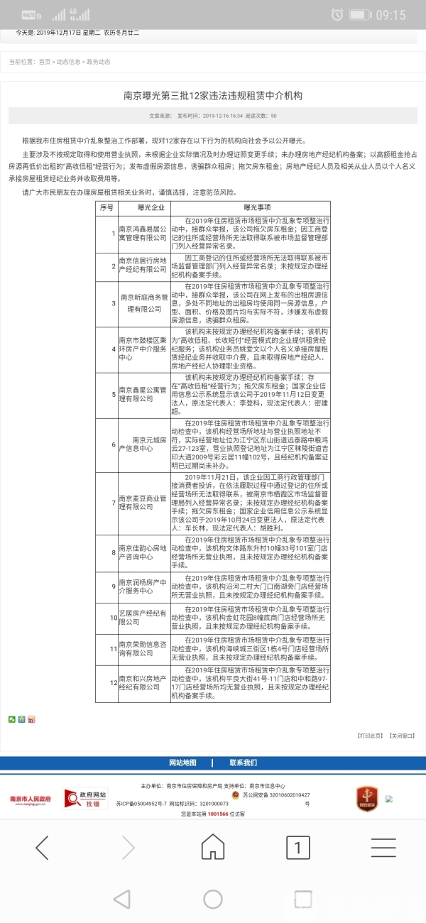 南京房屋租赁指导中心租赁市场管理科负责人表示,12家被曝光企业主要存在多种违法违规行为,在曝光的同时已要求所有机构必须立即整改。希望广大市民在办理房屋租赁相关业务时,谨慎选择,注意防范风险。