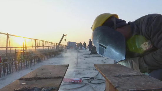 当日下午6时,测得气温已低至零下1摄氏度,技术人员确认条件达标后,开始进行浇筑施工。合龙段长约2米,采用挂篮模板结构现浇施工,大约花费一小时,工程人员完成了22立方米的混凝土注入。