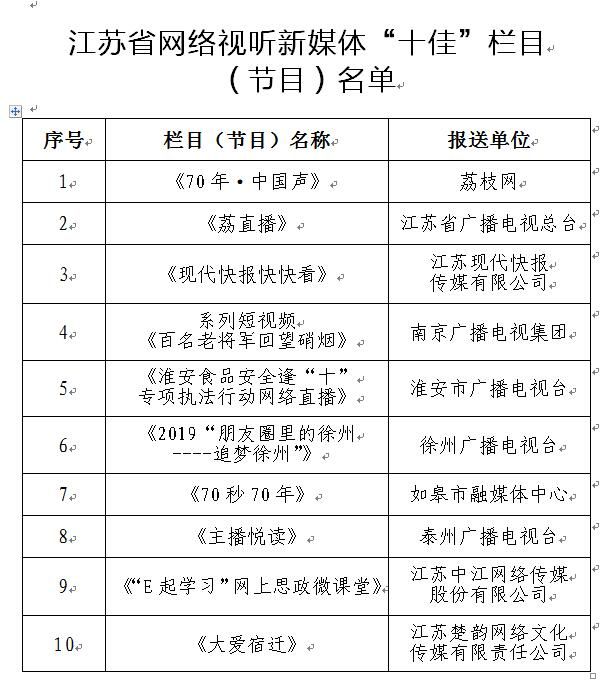 【附江苏省网络视听新媒体“十佳”栏目(节目)名单】