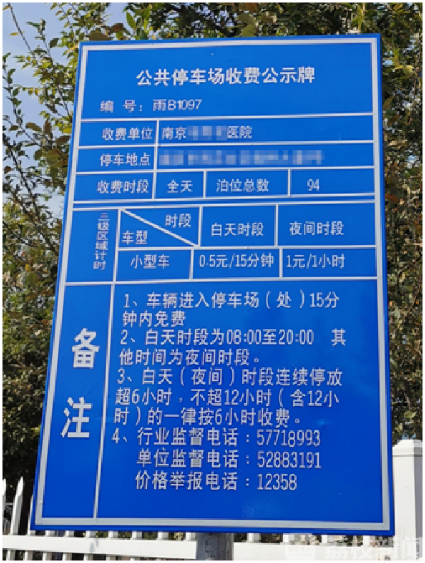 最近,南京市雨花台区市场监督管理局收到车主韩先生的反映,其在雨花台区某医院停车55分钟,被收取停车费2元,他认为该医院多收了他5毛钱停车费。