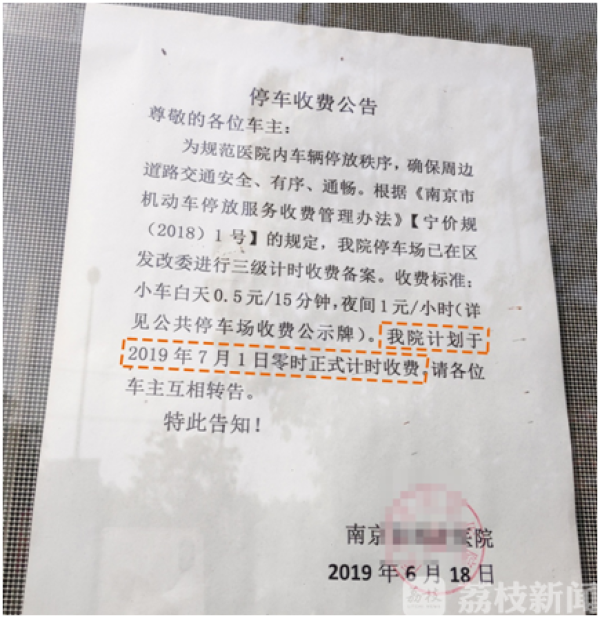 杨磊:“对于医院的行为,我们认定:1、长期未收停车费,造成院内车辆管理混乱。收取停车费的主要目的是为了规范车辆管理;2、对停车收费的规定不熟悉,造成了违规收费;3、医院立即整改,将停车管理系统的收费规则设置进行了更改。因医院未执行政府指导价,违规收取停车服务费,违反了《南京市机动车停放服务收费管理办法》、《价格法》等的规定,雨花台区市场监管局依法作出没收违法所得,并处罚款的决定,罚没款合计9422元。”