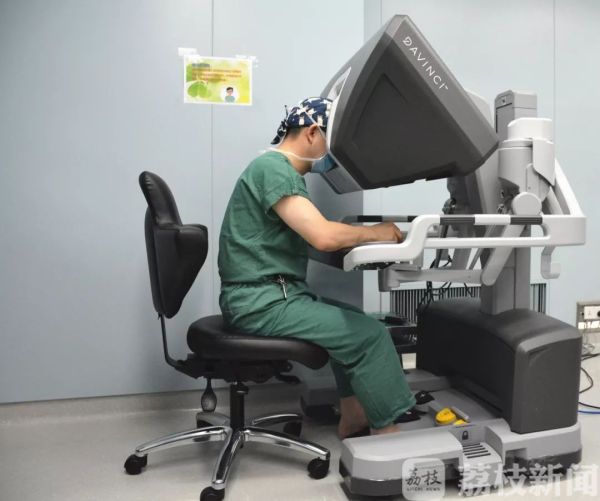 12月18日上午,常州一院肝胆胰外科副主任陈学敏团队实施首例“达芬奇机器人”手术。陈学敏坐在离手术台不远的中控台,凭借4个手指精巧控制操作杆和按钮,双脚控制7个脚踏板,通过传感器将指令传输给手术台前的“达芬奇手术机器人”。“达芬奇手术机器人”接收到指令后,四个伸入患者腹腔的机械臂各司其职,配合默契。3个半小时后,“达芬奇手术机器人”顺利从徐女士体内摘除肿瘤,术中出血量不到100毫升。