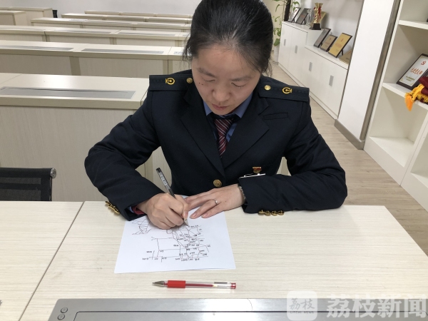 南京站客运车间客运员洪霞(大赛第一名)正在默画接算站示意图
