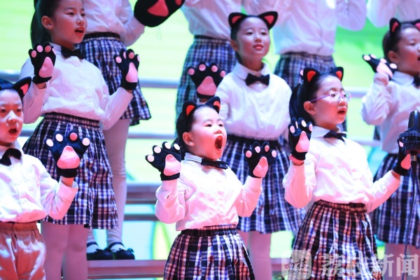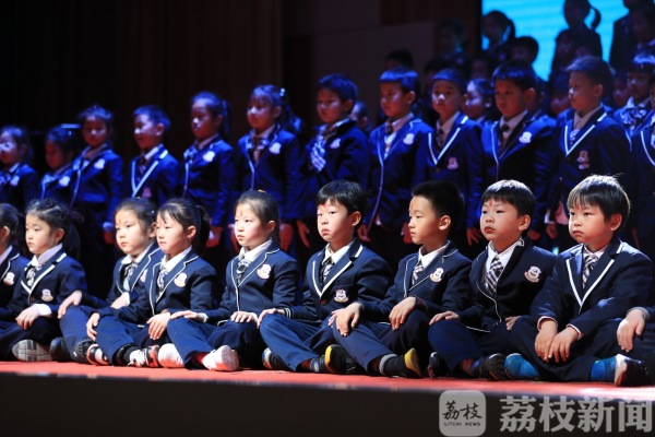 学生们依次上场,或以班级组队,或以社团呈现,一场精彩的“百天成长”让每一个孩子都是舞台的主角。南京书人实验学校小学部校长谢晓富说,通过百天成长仪式,见证了孩子们的成长,给他们留下一个飞翔的印记。“我们构建了一个幸福力课程,概括就是基础+N+1。基础就是国家基础课程,我们把国家基础课程校本化、品质化。比如我们提出书人6年,孩子们要读百本书。同时,我们也把体育放在学校课程的重要位置,有游泳课、篮球课。N就是51个选修社团,全校四百多个孩子,都可以根据自己的兴趣选择合适的社团,供孩子个性化成长。”