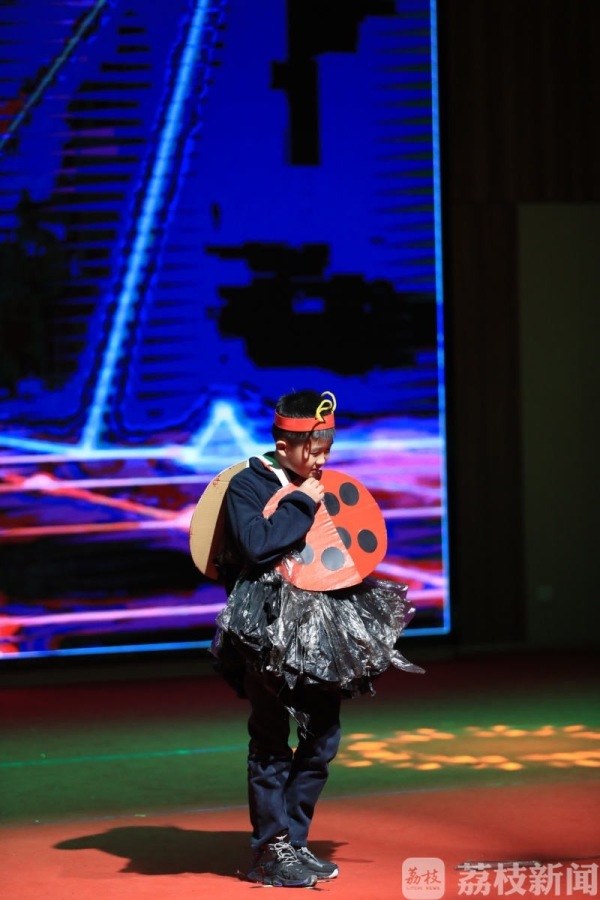六(1)班学生们带来的环保服装秀,班主任朱老师说编排节目的目的是希望通过艺术形式推动学生深入生活、关注自然,弘扬“保护环境、人人有责”的主题思想。让孩子们在表演或观赏节目的同时,接受了爱护大自然,增强环保意识的教育,潜移默化地成为有责任感、懂得真善美的“小主人翁”。