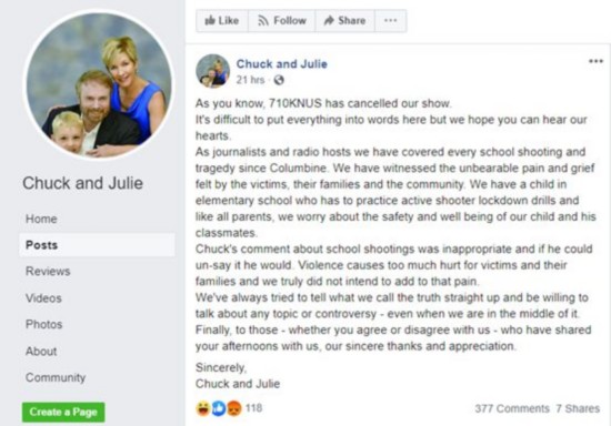 不过,这两人的节目还是遭到了听众们如潮水般的批评,电台也因此将他们的节目给取消了,称他们的言论对于一个有着校园暴力史的社区太不合适。